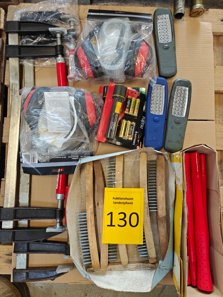 Skruetvingere, lommelygter, stålbørster, høreværn mm. (130)