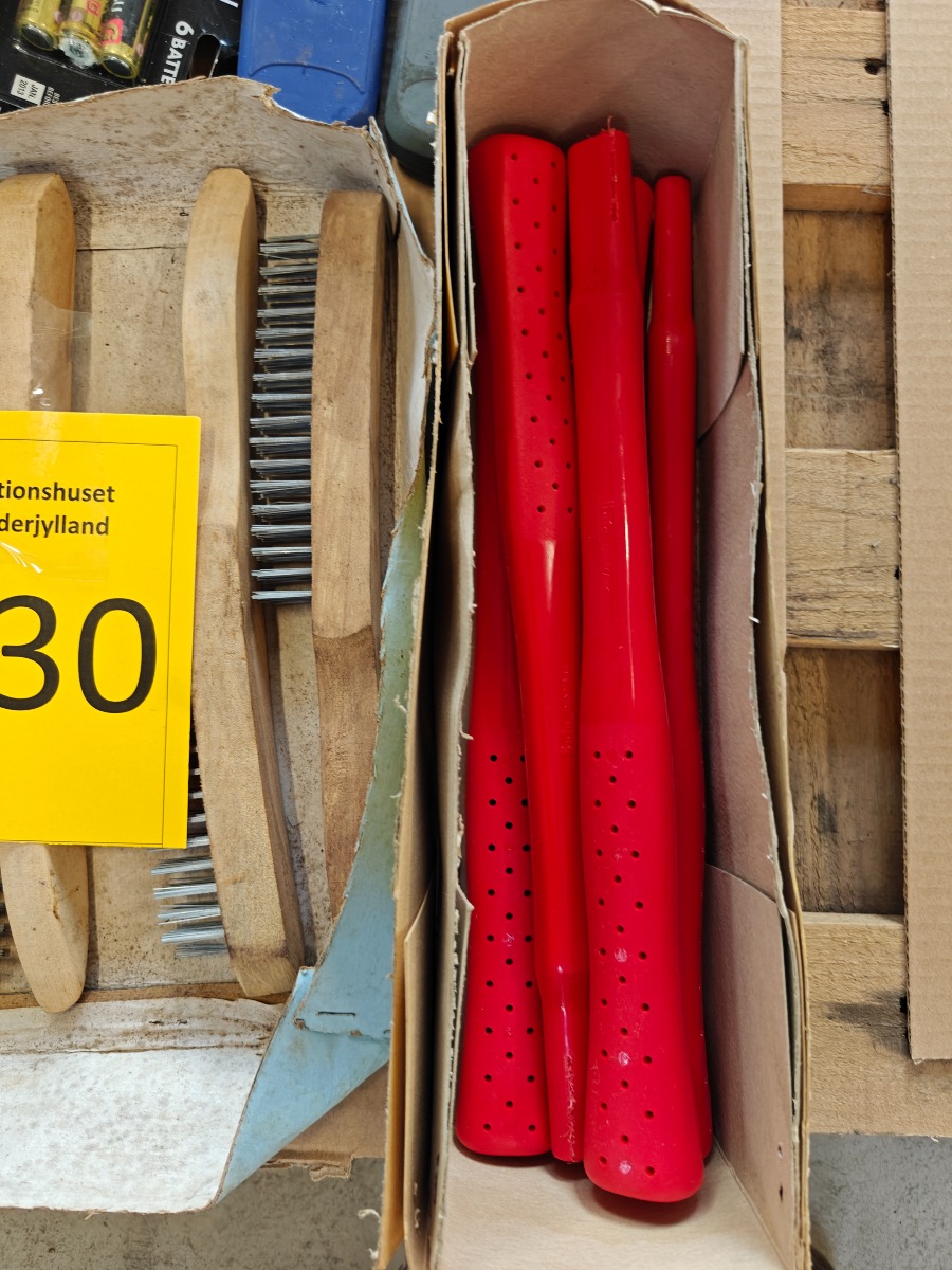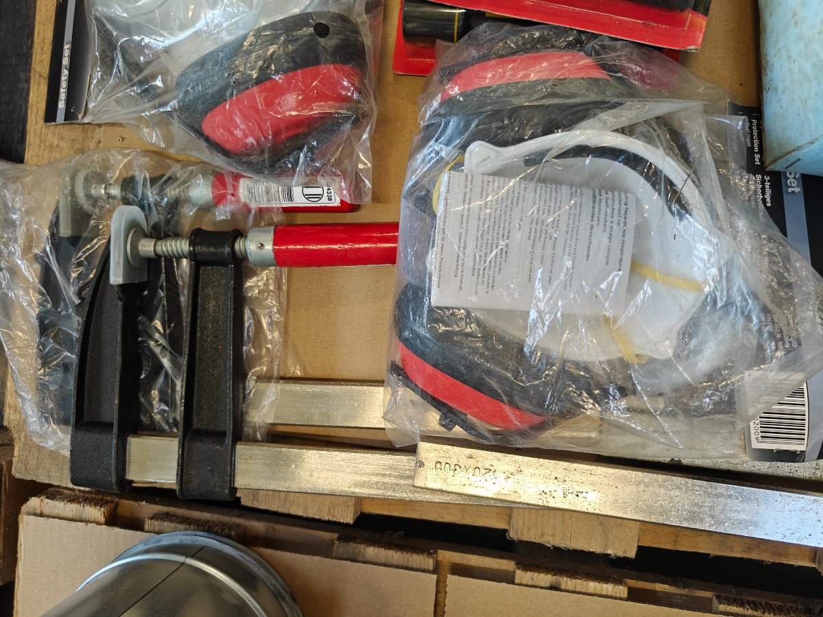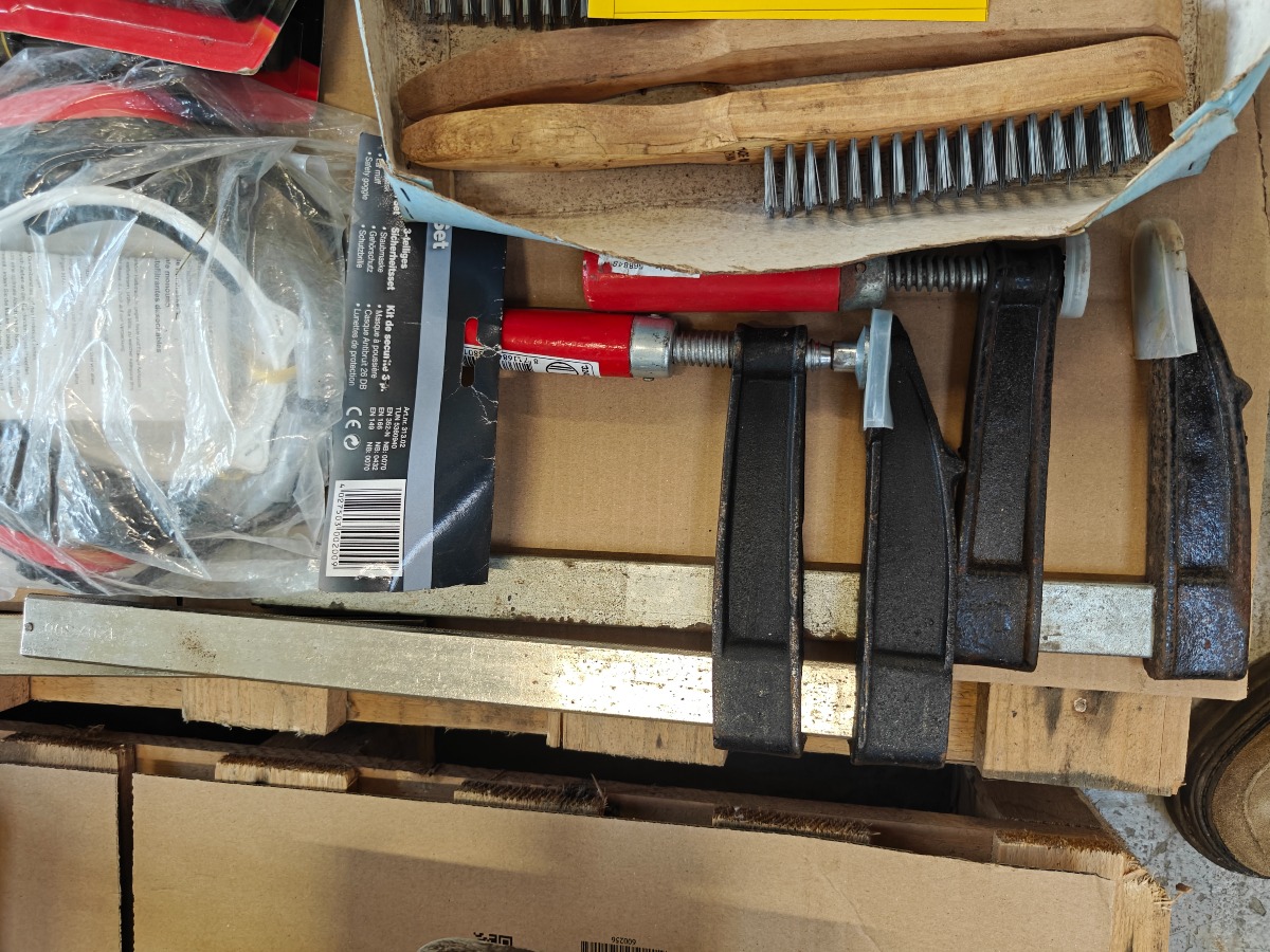 Skruetvingere, lommelygter, stålbørster, høreværn, skafter mm. Mest ubrugt.