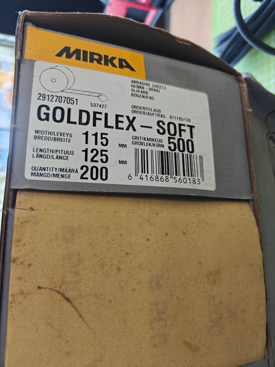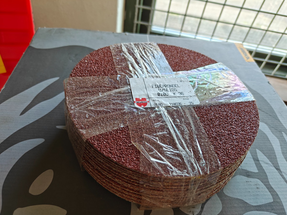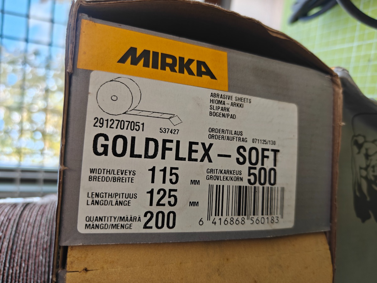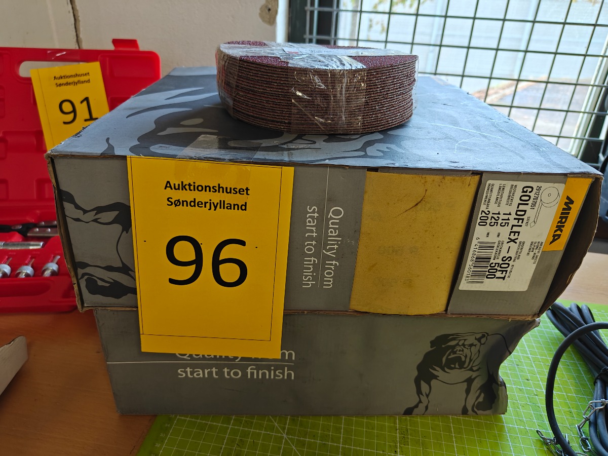 Fiberrondel uden slids Ø:180 K 36. Derudover to kasser Mirka 2912707051; 115x125 mm; P500; goldflex - soft slibepapir på rulle. Ubrugt.
