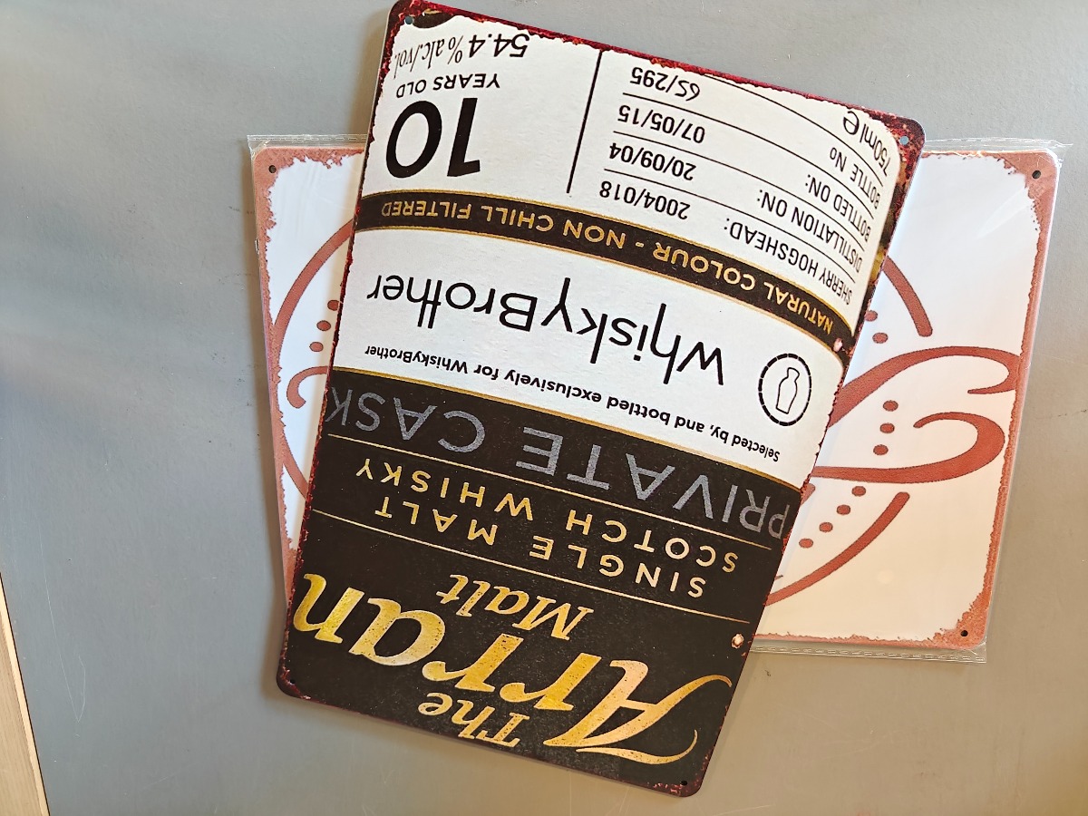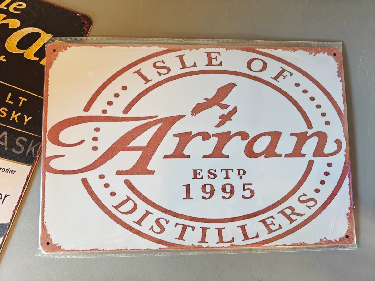2 stk. Arran Whisky metalskilte. Ca. str. A4