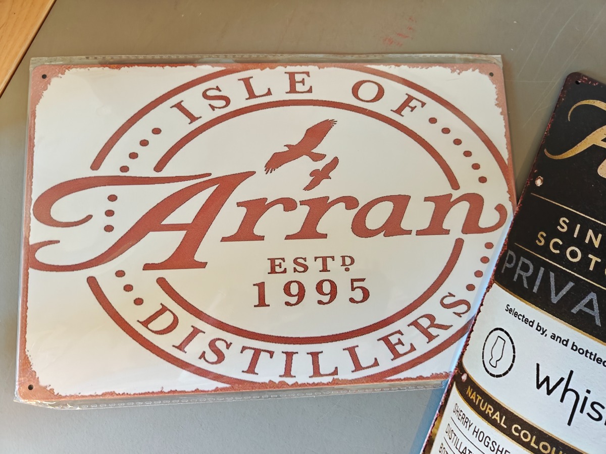 2 stk. Arran Whisky metalskilte. Ca. str. A4