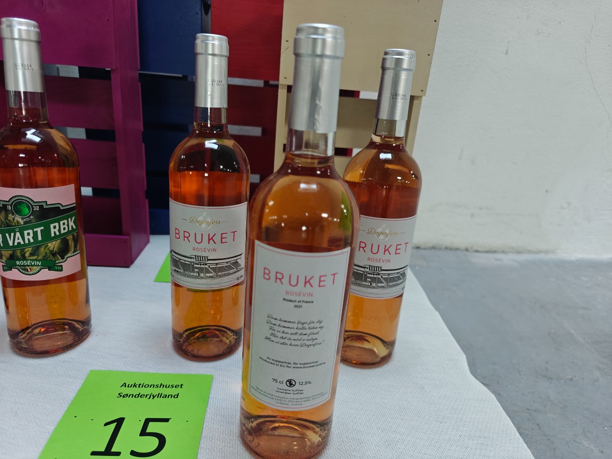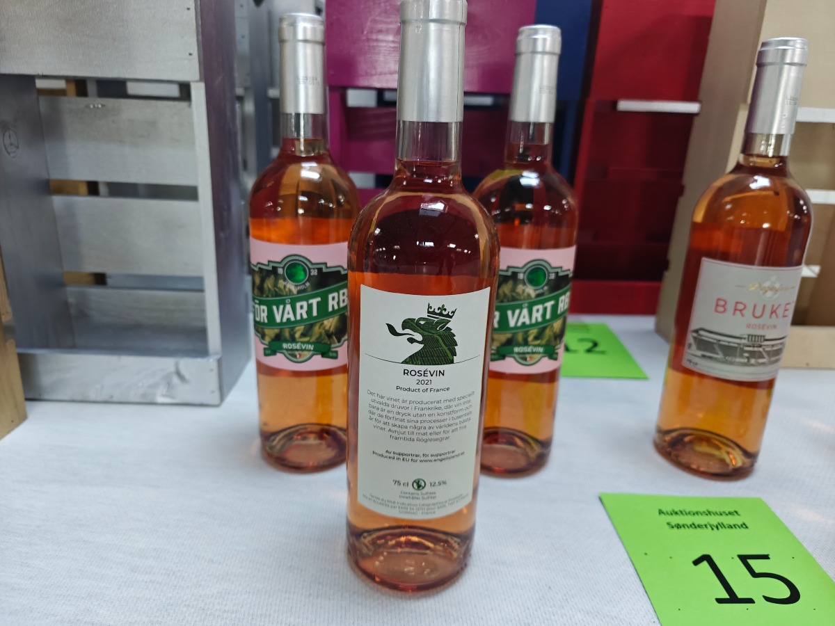 6 fl. Rosévin. 3 fl. För Värt RBK. 2021. Produceret i Frankrig. 75 cl. 12.5% vol. 3 fl. Degerfoss Bruket. 2021. Produceret i Frankrig. 75 cl. 12.5% vol.