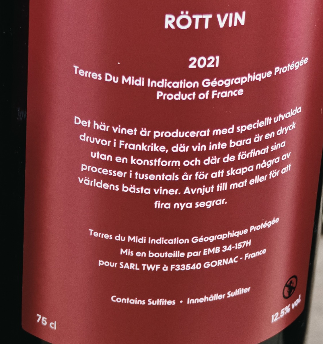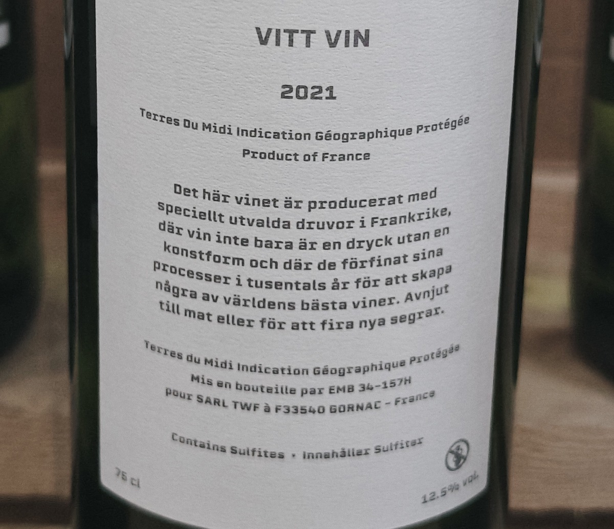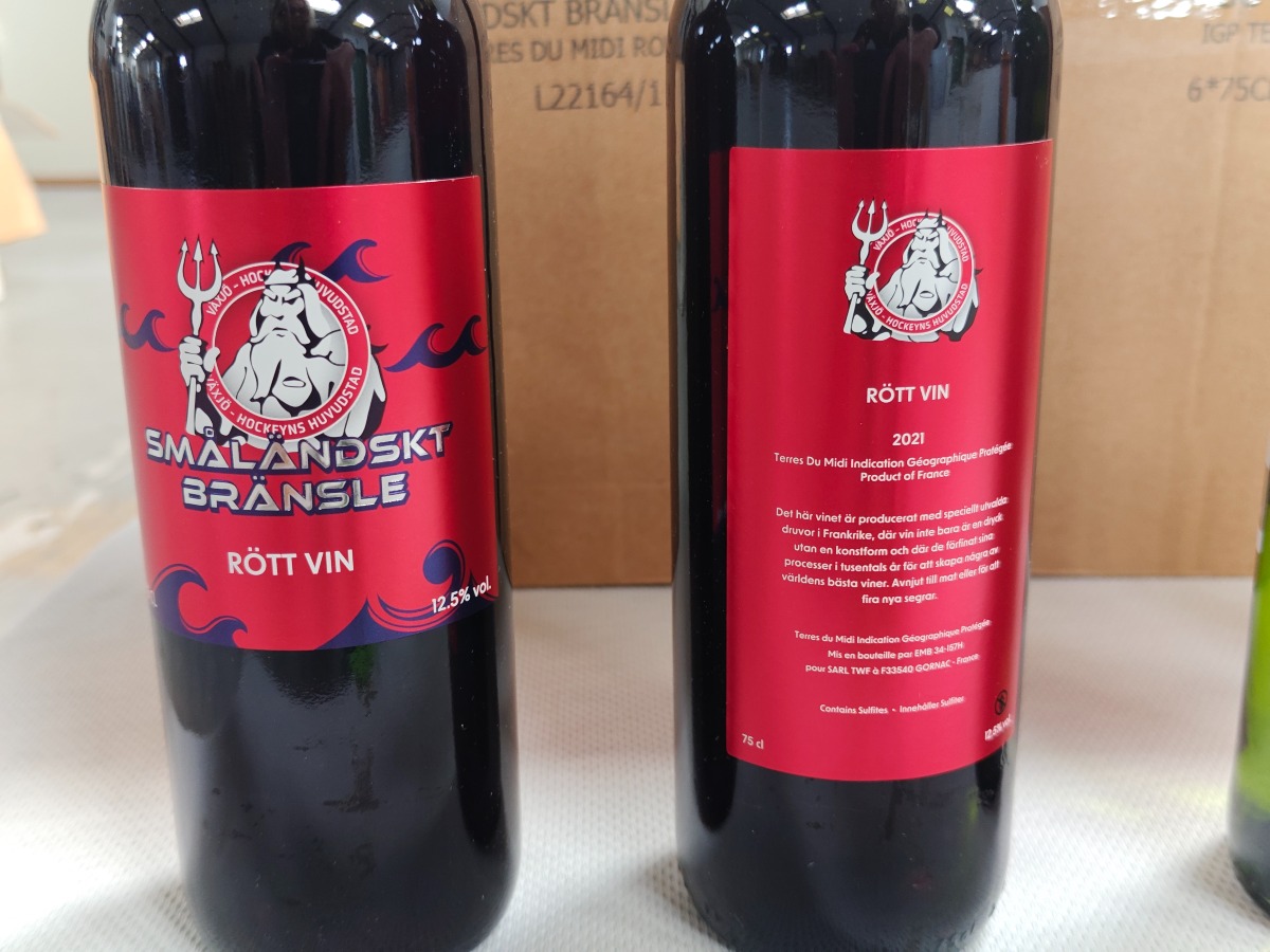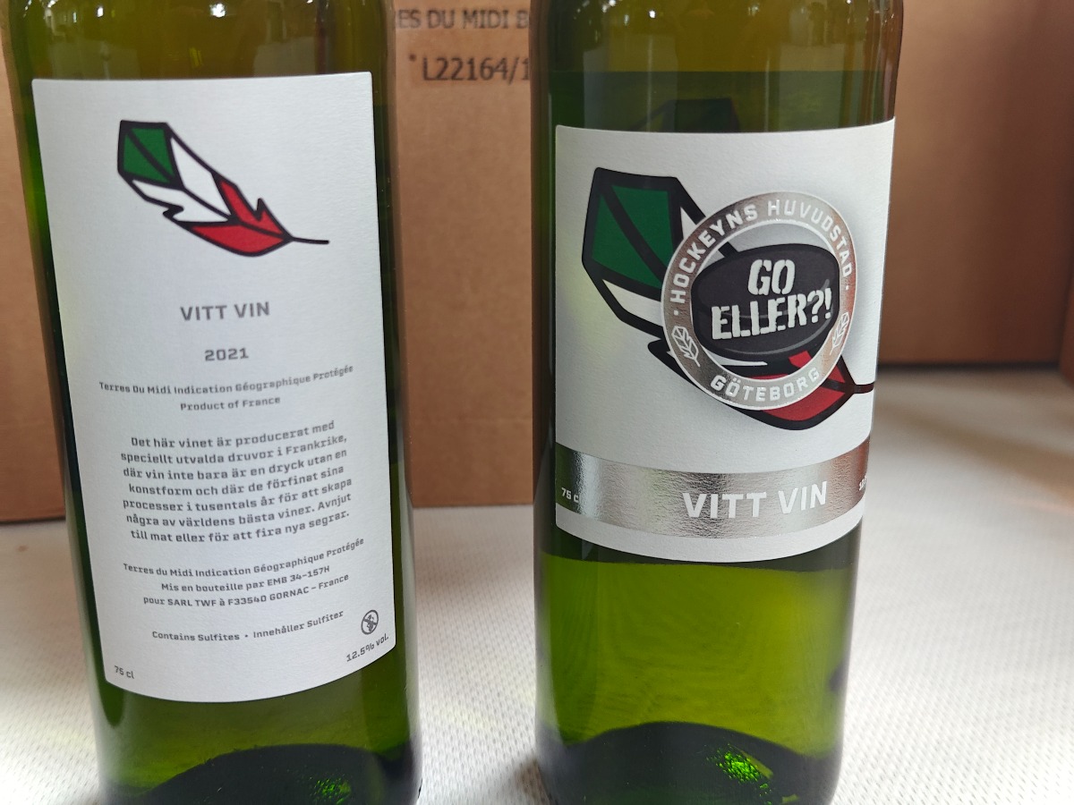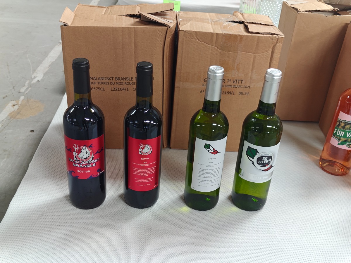 12 fl. Vin: 6 fl. Rødvin. Smålänskt Bränsle. 2021. Produceret i Frankrig. 75 cl. 12.5% vol. 6 fl. Hvidvin. Go Eller?! 2021. Produceret i Frankrig. 75 cl. 12.5% vol.