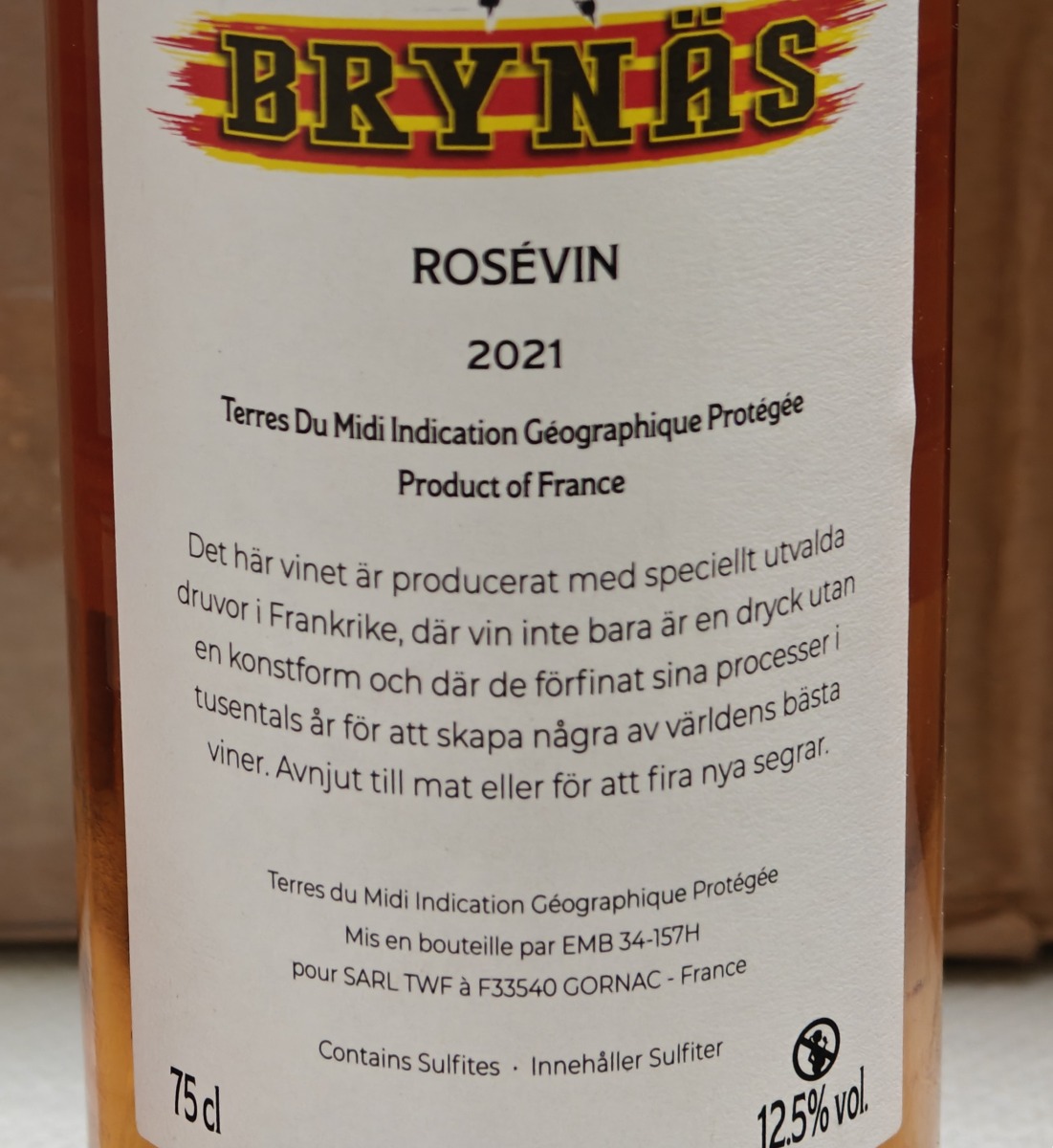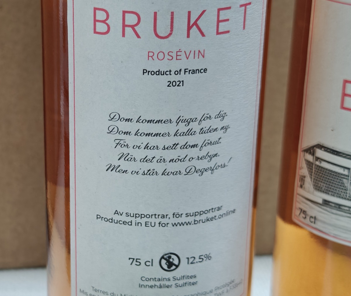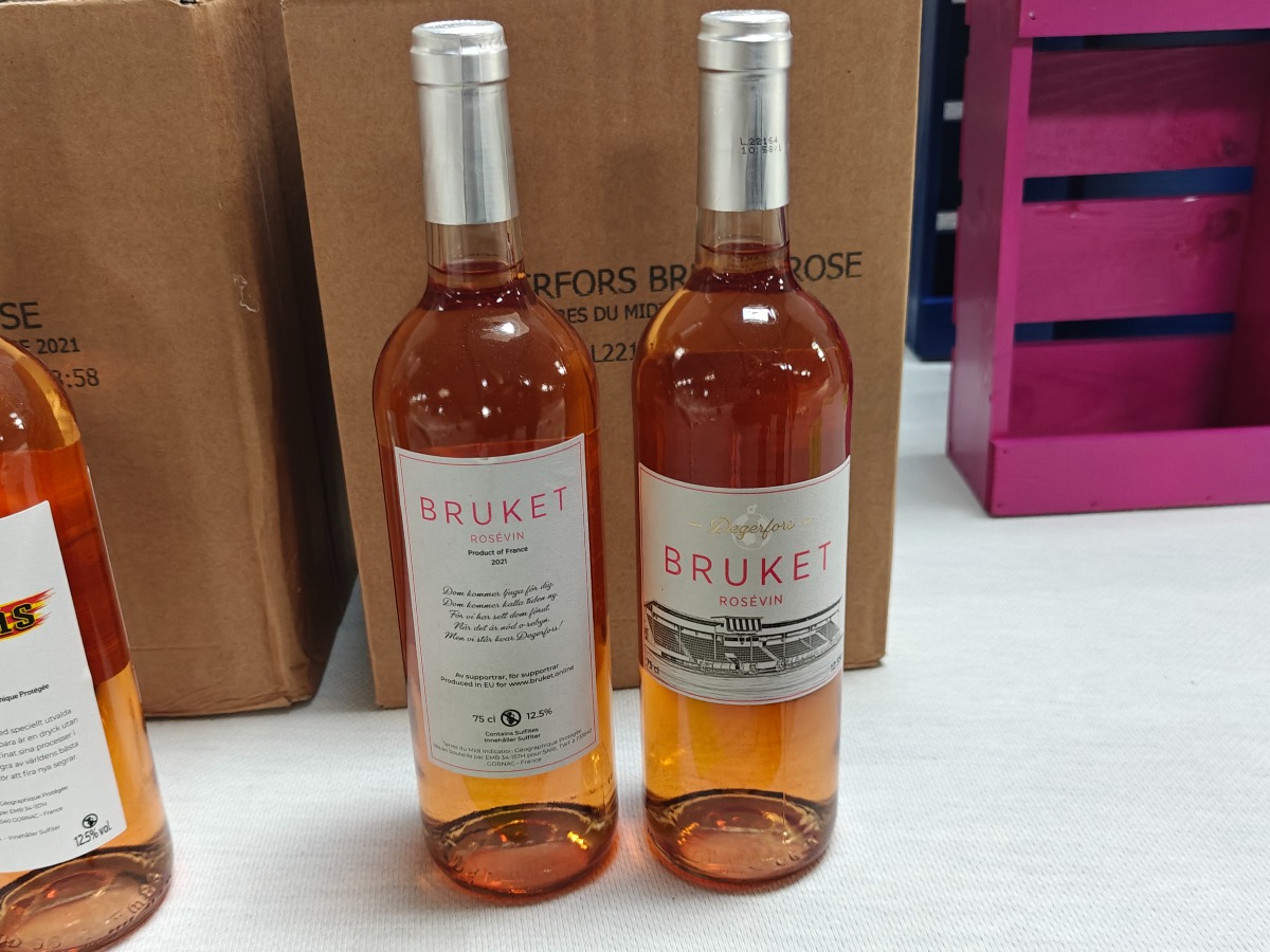 12 fl. Rosévin: 6 fl. Degerfoss Bruket. 2021. Produceret i Frankrig. 75 cl. 12.5% vol. 6 fl.Brynäs. 2021. Produceret i Frankrig. 75 cl. 12.5% vol.