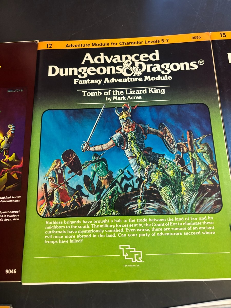 12 stk. Dungeons & Dragons eventyrmoduler. Fra samler og har diverse brugsspor, men nogenlunde stand. Der anbefales at komme til eftersyn og bese varerne. Fra dødsbo