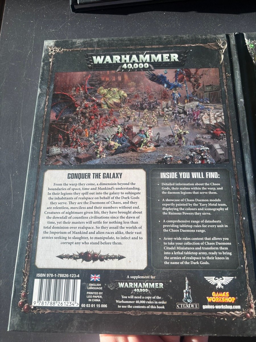 3 stk. Warhammer bøger (Chaos Daemons, Heretic Astartes – Death Guard & Drukhari). Fra samler og har diverse brugsspor, men nogenlunde stand. Der anbefales at komme til eftersyn og bese varerne) Fra dødsbo