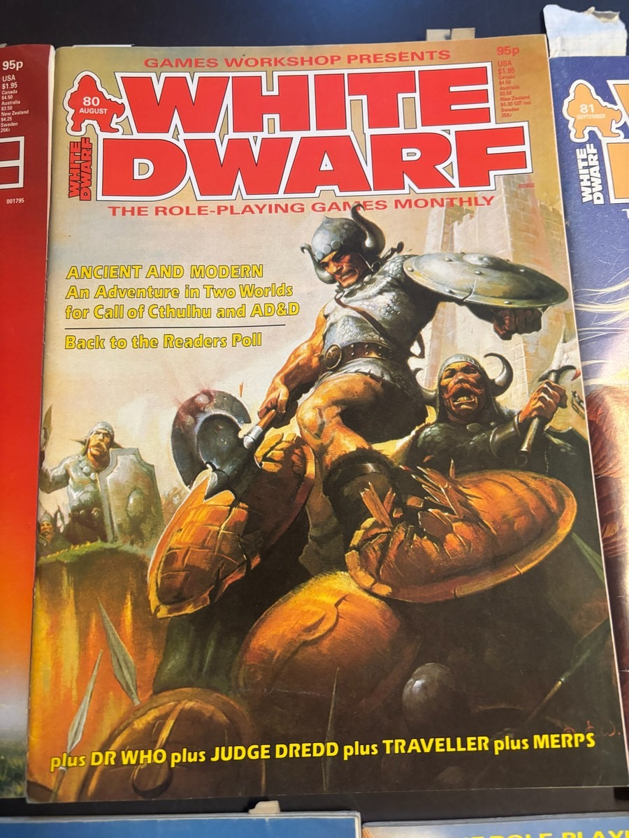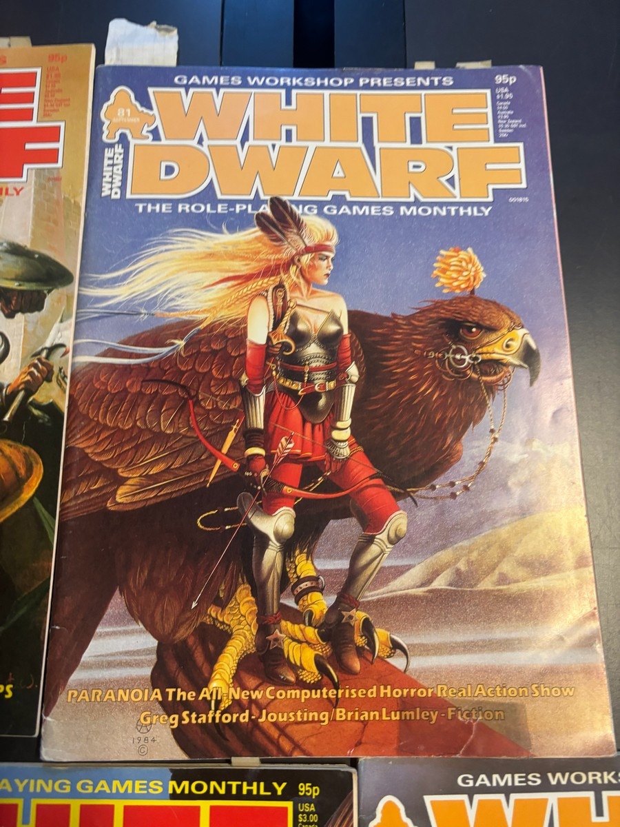 7 stk. Classic White Dwarf (RPG-era). Fra samler og har diverse brugsspor, men nogenlunde stand. Der anbefales at komme til eftersyn og bese varerne. Fra dødsbo