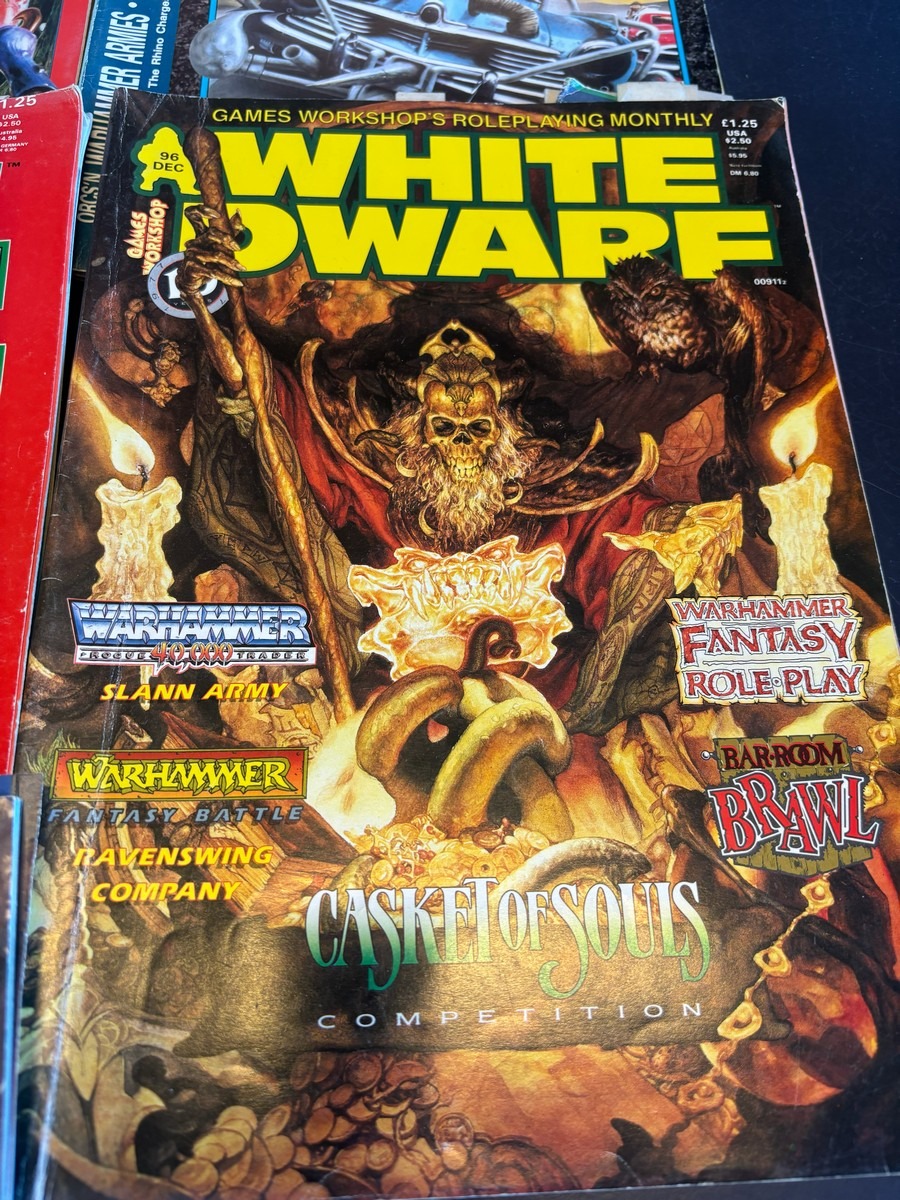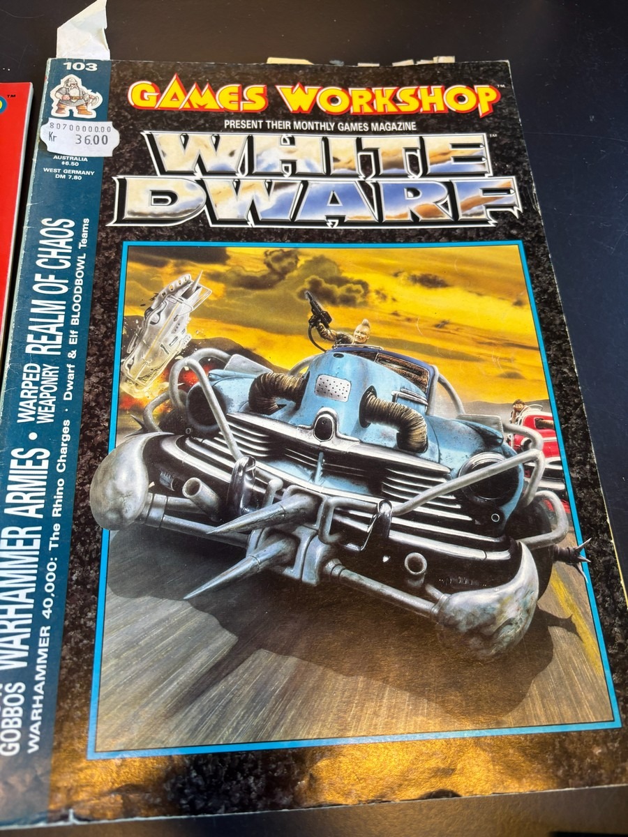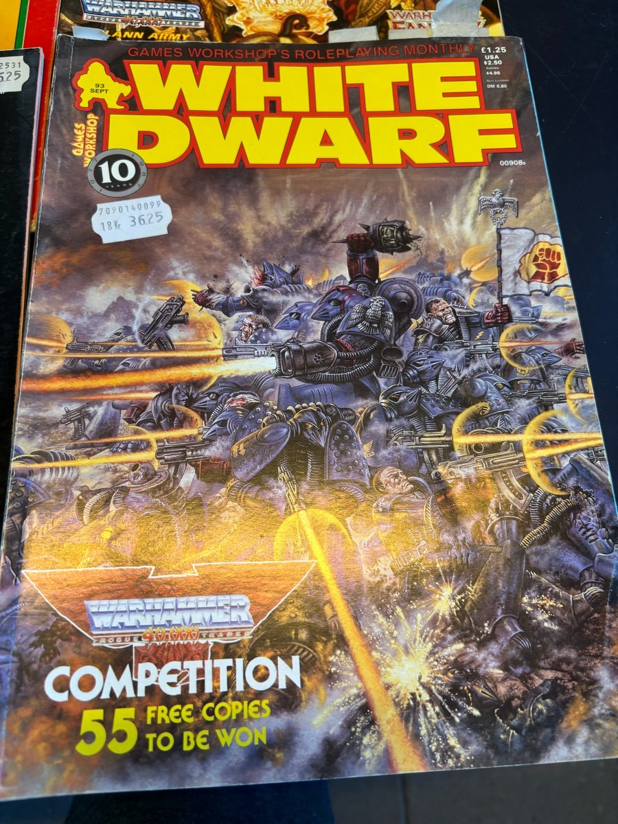 9 stk. White Dwarf – Games Workshops månedlige magasin, mm. Fra samler og har diverse brugsspor, men nogenlunde stand. Der anbefales at komme til eftersyn og bese varerne. Fra dødsbo