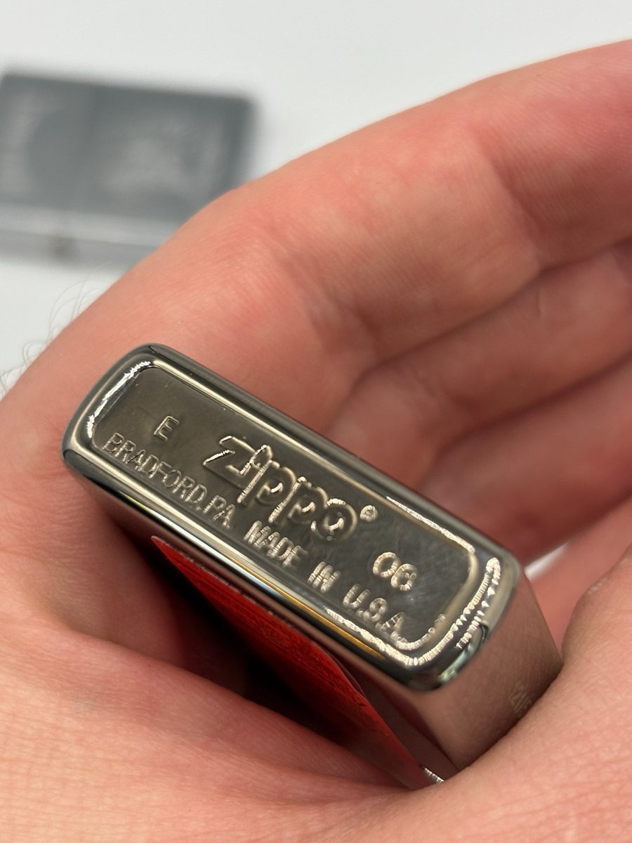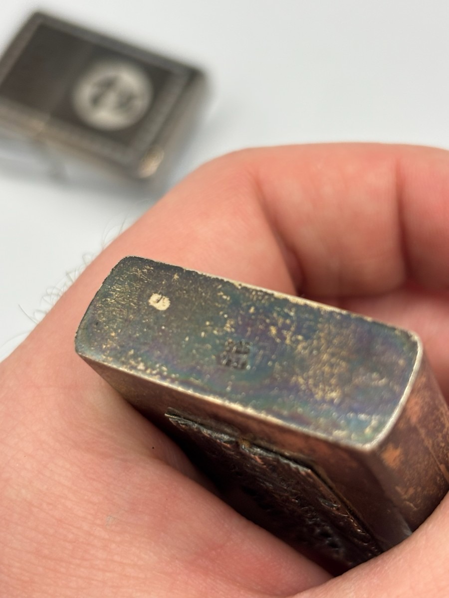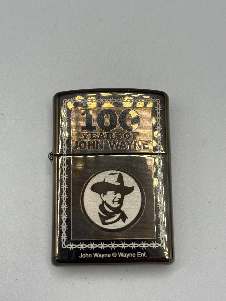 Zippo Wild West Sitting Bull 1834-1890 og 100 år for John Wayne. Denne med ubrudt label. Hertil unavngiven lighter med inkamotiv. Stemplet 925. Stammer fra dødsbo.