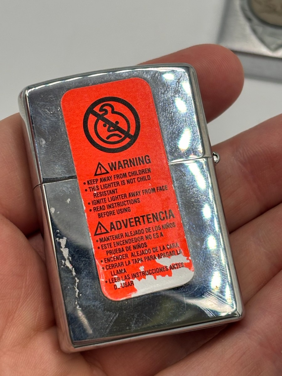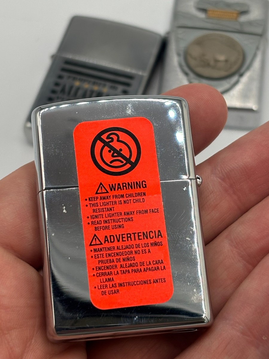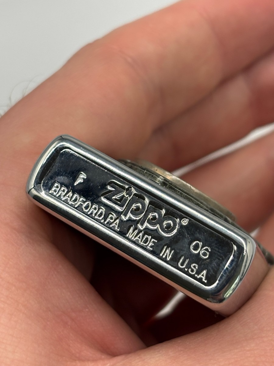 Zippo 75 år 1932-2007 og model med Property of Alcatraz. Begge med  ubrudt label. 1 med monteret Buffalo nickel og ejernavn indgraveret. Fra dødsbo.